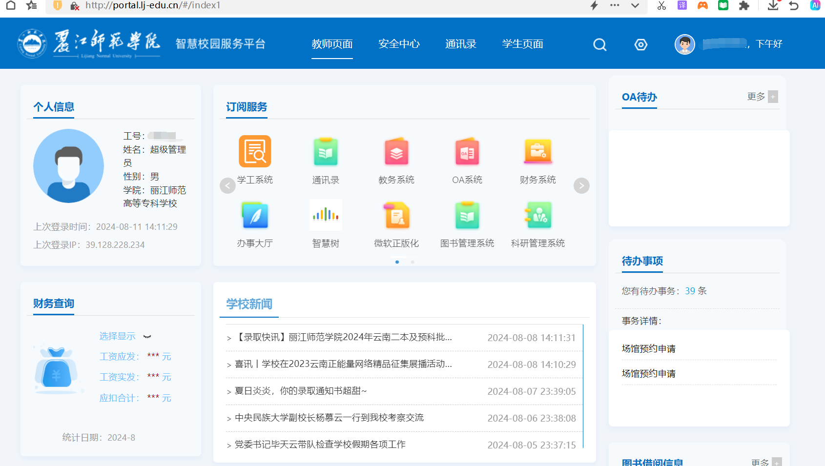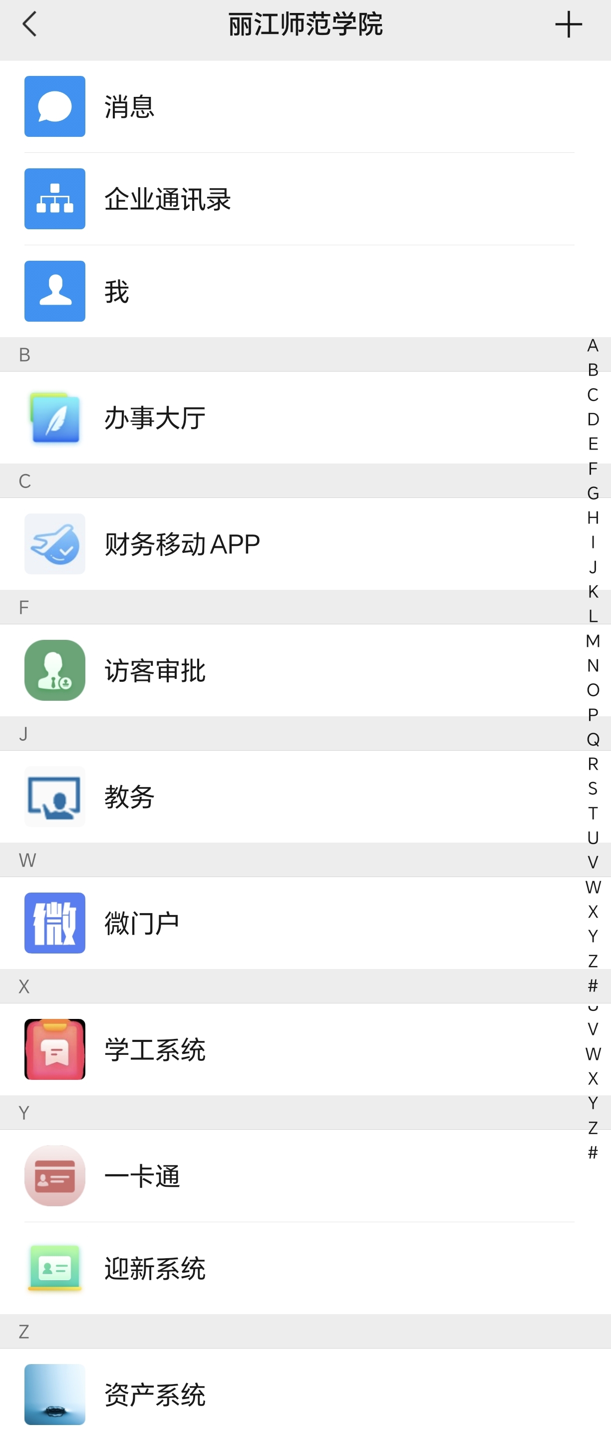 丽江师范学院以企业微信为支撑,为信息化校园的各种网络和应用服务提供了教务、财务、学工、课程、图书查询等应用的统一入口,为师生的学习、办公、生活服务提供便捷服务。